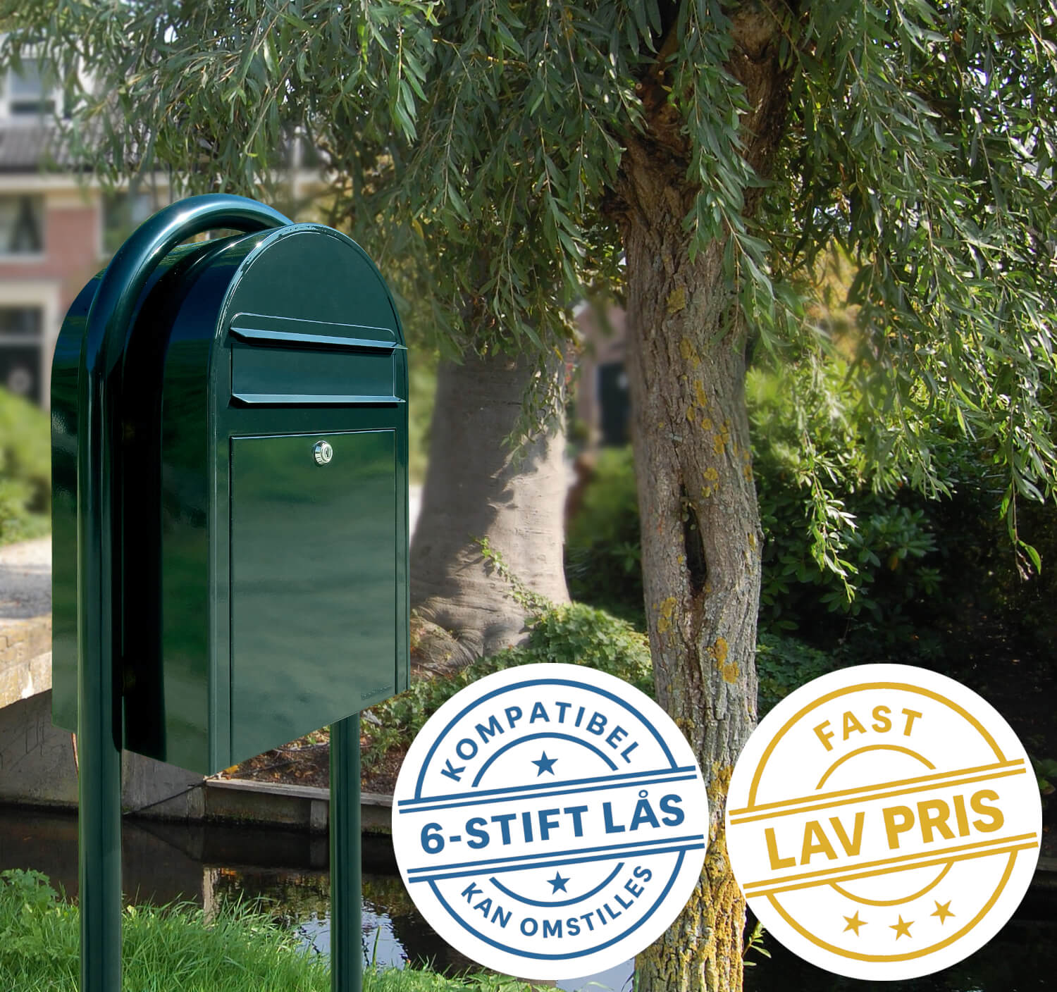 Postkassen er fremstillet i forzinket stålplade der er pulverlakeret hvilket giver en lang levetid.