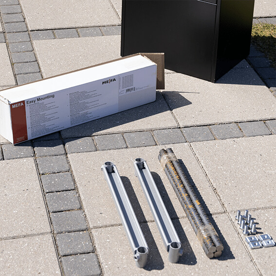 "MEFA Easy Mounting" er et monteringssæt til postkassestander så man undgår at grave et stort hul og støbe standeren fast.
