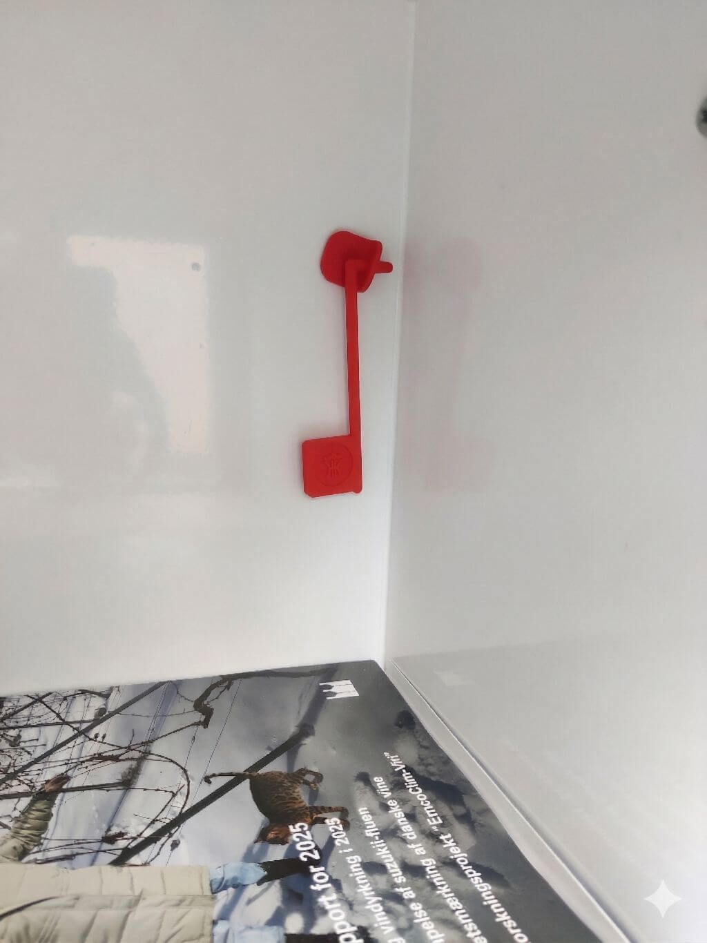 Der medfølger holder med dobbeltklæb, så du kan sætte aflåsnøglen op inde i postkassen, så du altid har den hvor den skal bruges, et lille tip, sæt holderen lidt på skrå, så vil nøglen hænge lodret og vil ikke falde ud af holderen.