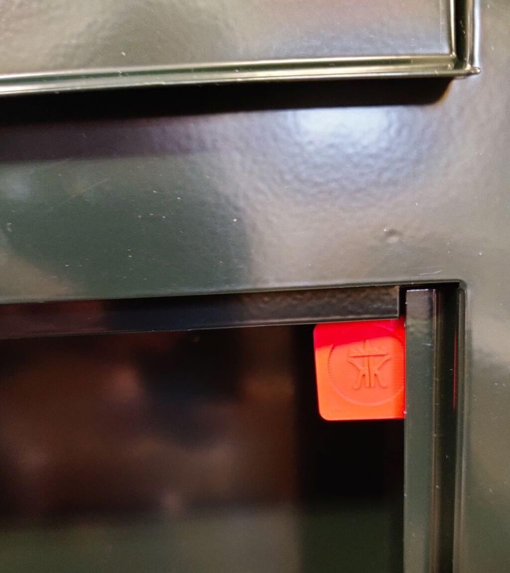 Aflåsningen fjernes let ved at vippe aflåsningnøglen let til en side og trække den ud af hullet, du kan evt. lade nøglen ligge i bund af postkasse når den ikke bruges.