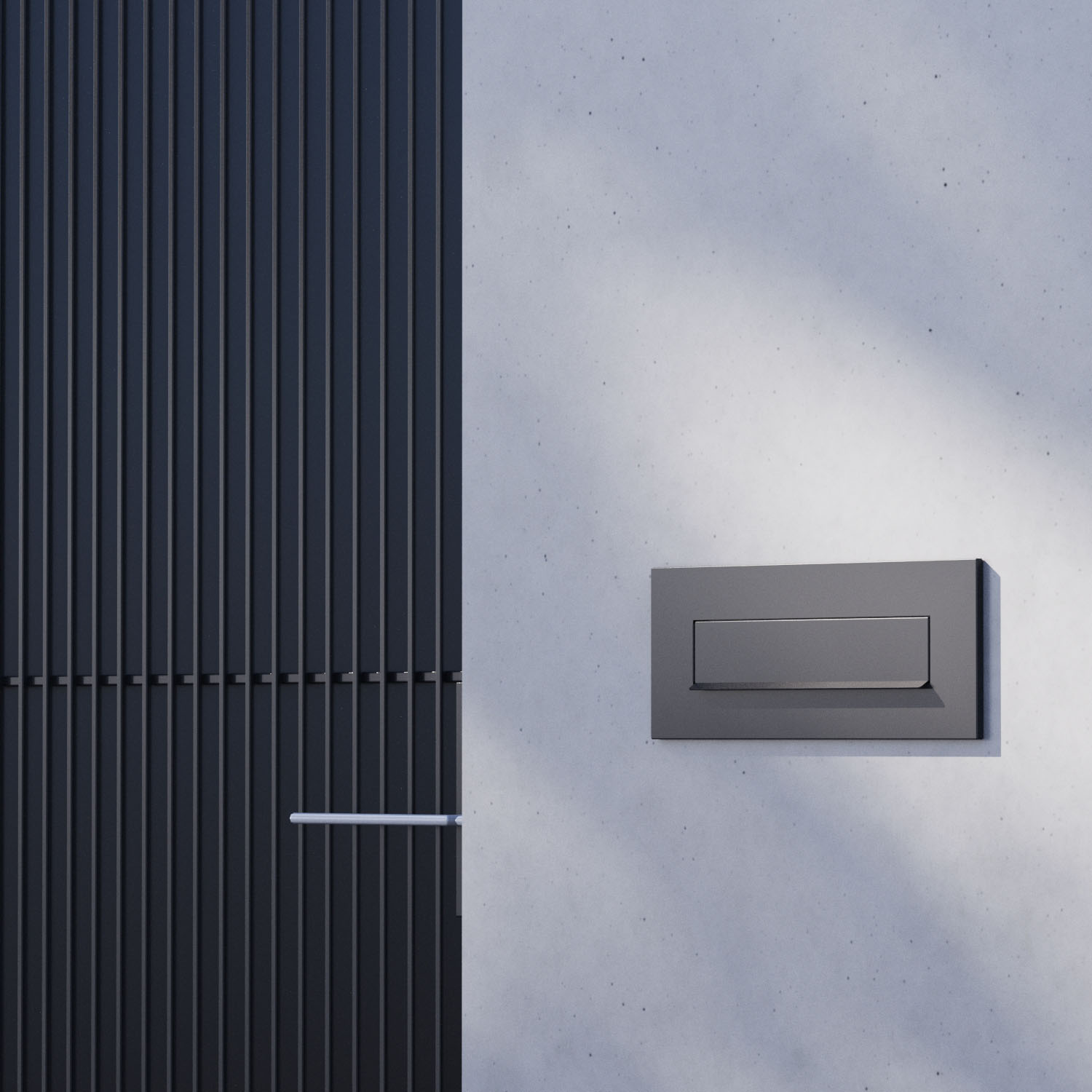 Den er designet til indbygning i mur eller mursøjle og forener stilrent design, holdbarhed og sikkerhed – ideel til moderne boliger og ejendomme.