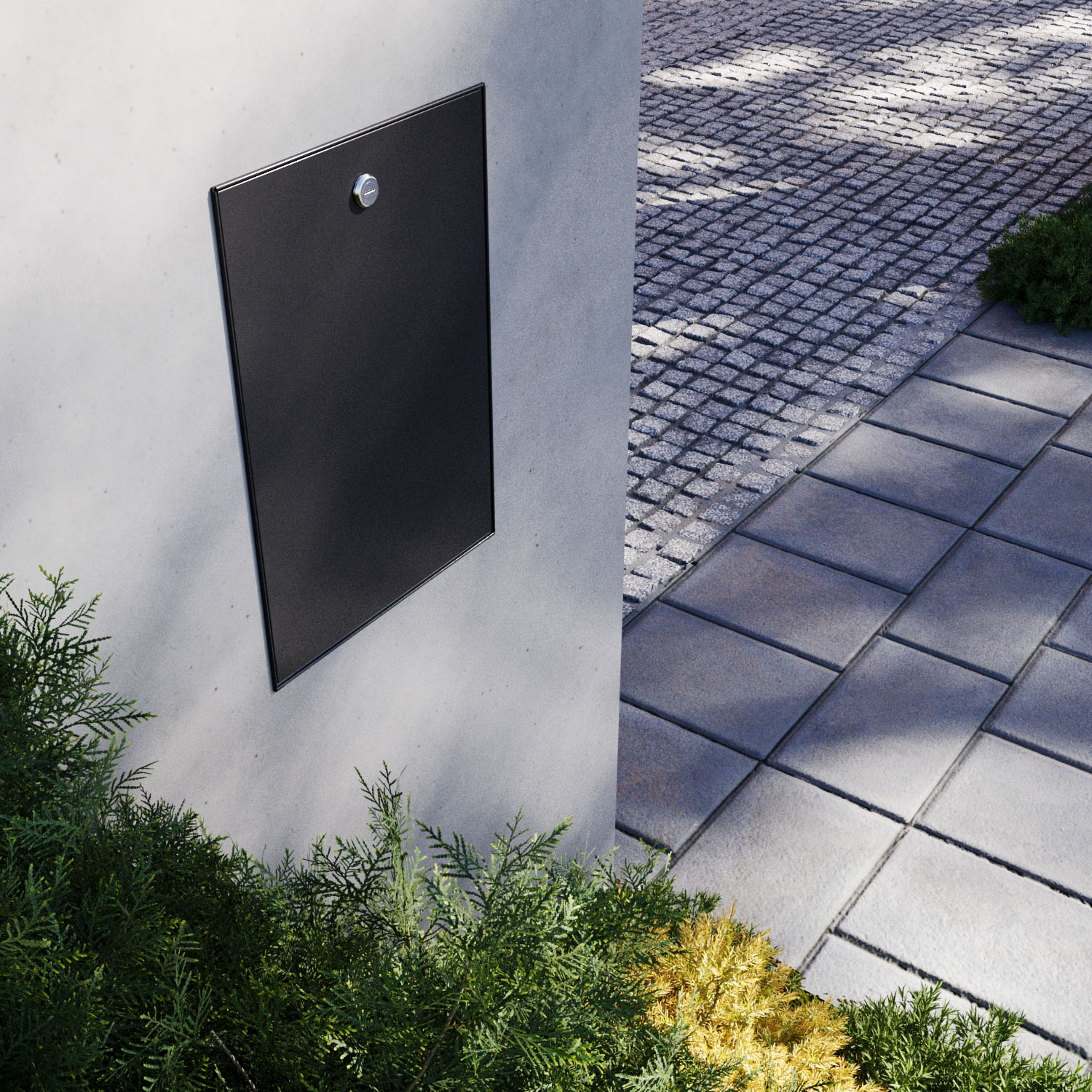 Indbygningspostkasse MEDIUM-2 i Sort lakeret rustfrit stål – eksklusiv postkasse til mur eller mursøjle