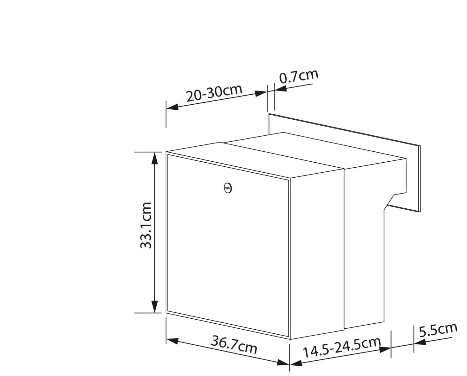 Nem montering og justering – leveres med monteringsmateriale og trinløs dybdejustering fra 20 til 30 cm.
