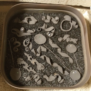 I den tørre tilstand, kan der arbejdes videre med smykket - enten ved at tilføje flere detaljer, lag, eller gravere yderligere mønster i. Smykkeleret kan slemmes op til pasta og pensles på eks. blomster og blade fra naturen. Der skal en 7-8 lag for at opnå den rigtige tykkelse - blomsten/bladet brænder væk i ovnen og efterlader det flotteste detaljerede aftryk fra naturen.